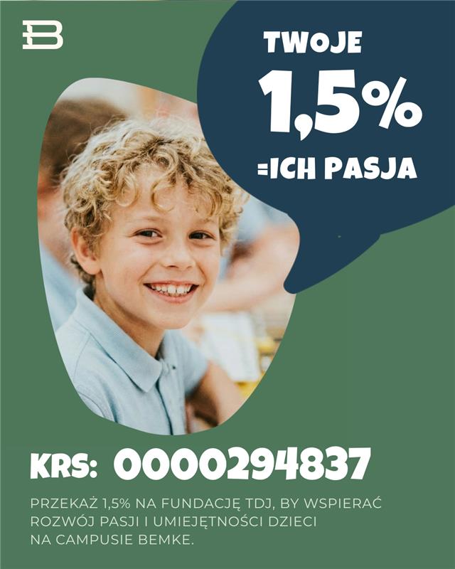 Jeśli zechcieliby Państwo wesprzeć ten kierunek rozwoju, będziemy wdzięczni za przekazanie 1,5% podatku na rzecz naszych działań - numer KRS Fundacji TDJ: 0000294837. Każda złotówka to bezpośredni wkład w sprzęt, z którego Państwa dzieci będą korzystać na co dzień.
